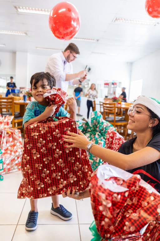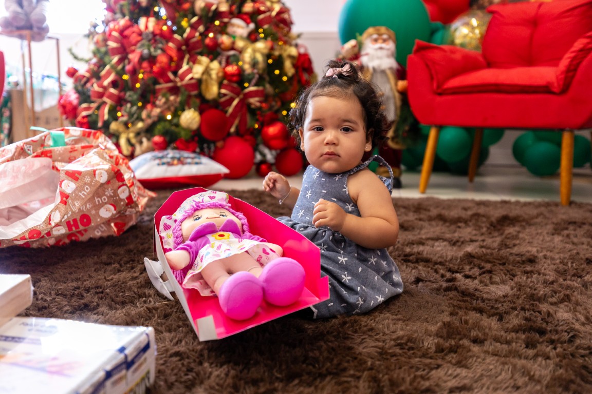 Mas o encanto vai além das cestas. As crianças de até 10 anos também participam da magia: recebem presentes e livros de histórias ou para colorir, porque aqui o Natal é vivido em todas as idades.