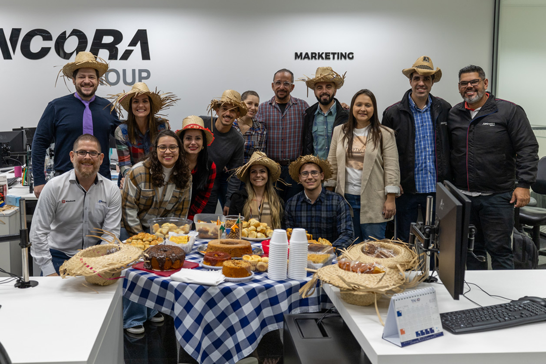 Durante o café julino, não faltaram sorrisos e momentos de integração entre os membros da Âncora Group. Certamente, foi uma celebração memorável que ficará na lembrança de todos da empresa.
