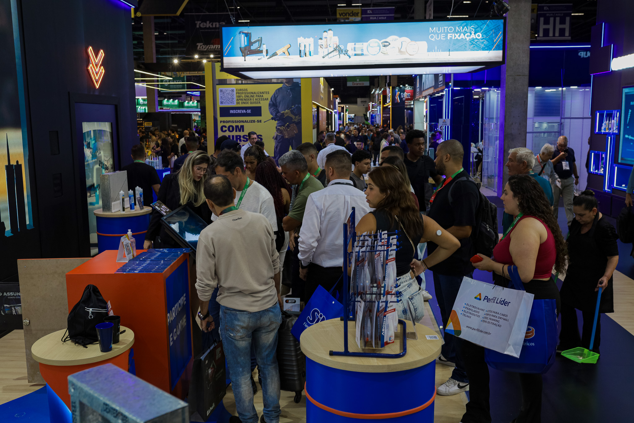 Além dos programas informativos, Cases e Class, que foram muito bem recebidos pelos visitantes, o Quiz, o Jogo da Memória e a Maratona estão ensinando as pessoas sobre a importância dos sistemas de fixação. De maneira inteligente e leve, por meio do entretenimento, a empresa se aproxima dos profissionais da construção civil para evidenciar o alto padrão de qualidade de seus produtos.